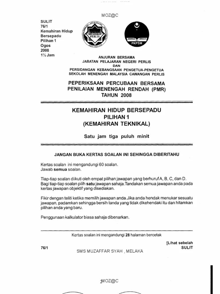 Sulit 76 kemahiran hidup bersepadu kemahiran teknikal ogos jam maktab rendah sains mara gerik ujian selaras tingkatan 3 kemahiran hidup bersepadu kemahiran .